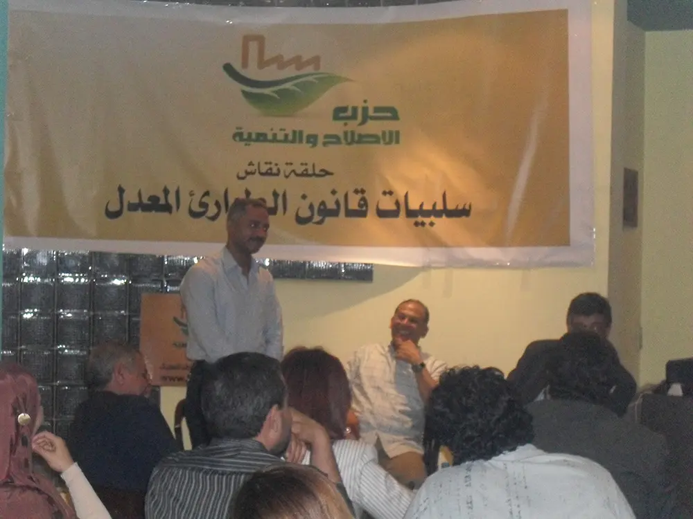 عقدت لجنة التدريب والتثقيف السياسى بالحزب حلقة نقاشية عن " سلبيات قانون الطوارىء المعدل " , حيث قام السيد / محمد فوزى " أمين اللجنة " بعرض مختصر عن قانون الطوارىء