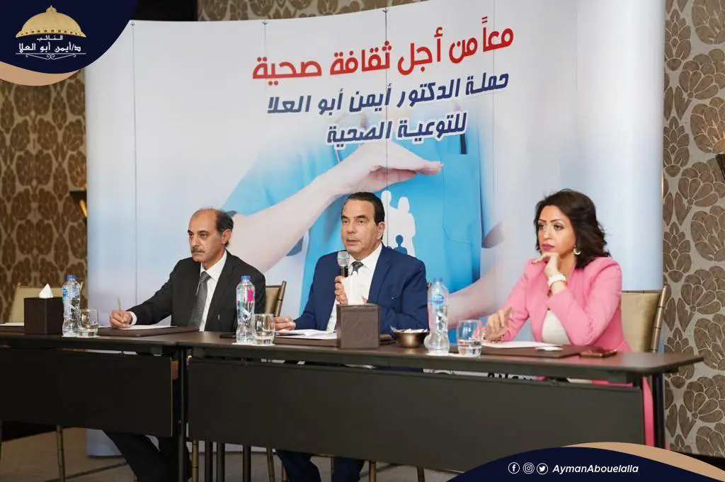 أطلق الدكتور أيمن أبو العلا، وكيل لجنة حقوق الإنسان بمجلس النواب، رئيس الهيئة البرلمانية لحزب الإصلاح والتنمية، حملة موسعة للتوعية الصحية تحت عنوان "معا من أجل ثقافة صحية"، في مؤتمر صحفي عقده