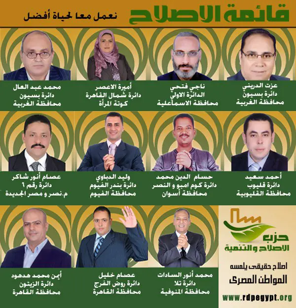تقدم مرشحى حزب الاصلاح والتنمية باوراقهم للجنة العامة للانتخابات لمجلس الشعب 2010 آملين ان يخوضوا الانتخابات بالبرنامج الاصلاحى للحزب وان يؤثروا به فى الشارع المصرى